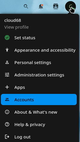 Go to Account by clicking on your profile icon on top right corner of your Nextcloud.