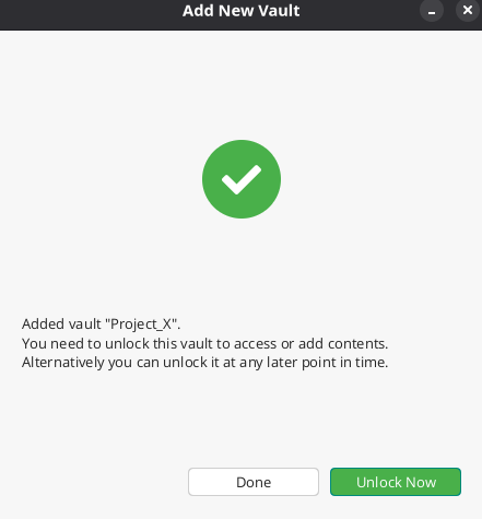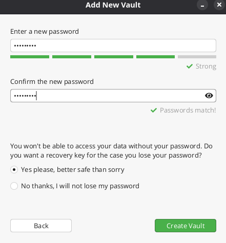 After setting up your strong password, click Create Vault.
