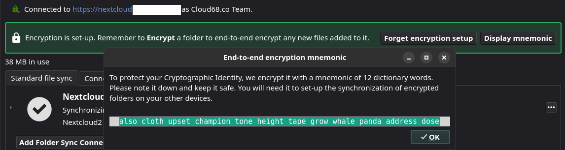 Nextcloud data encryption with E2EE