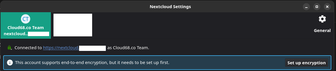 Once the Nextcloud client is restarted you will see "Set up encryption" as seen in the screenshot below